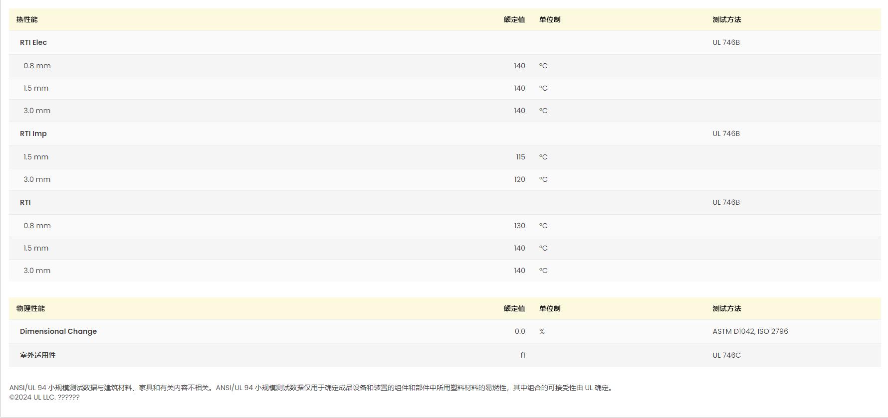 | 可燃性 | 额定值 | 单位制 | 测试方法 |
