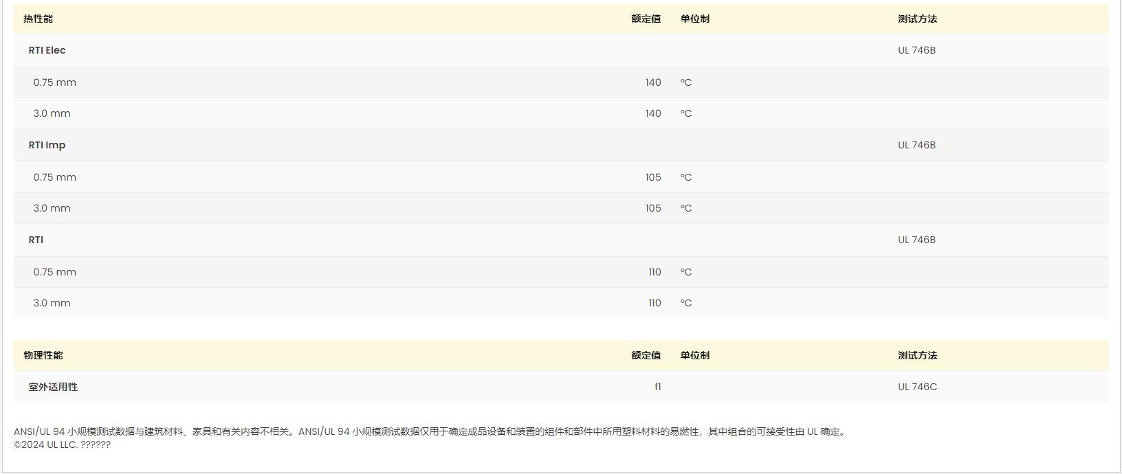| 可燃性 | 额定值 | 单位制 | 测试方法 |