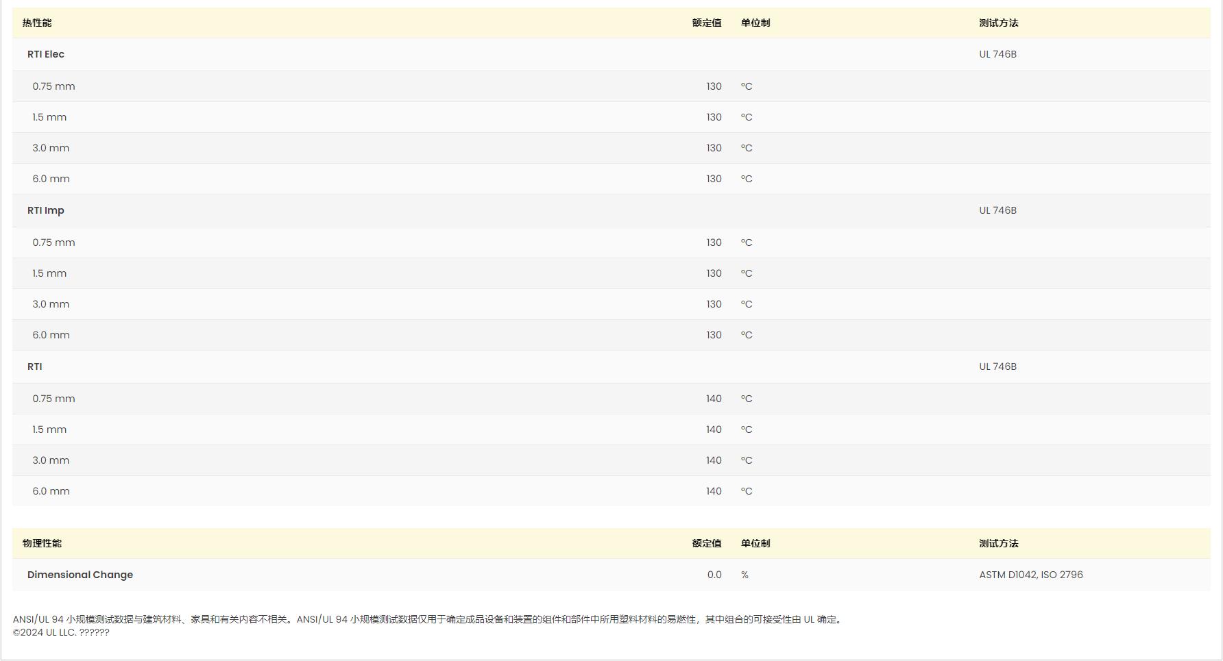 | 可燃性 | 额定值 | 单位制 | 测试方法 |